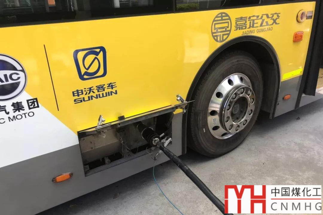 (申沃氫燃料電池公交正在加氫)
