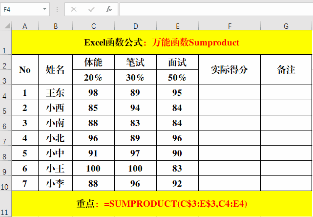 四、Sumproduct:多權(quán)重計算。