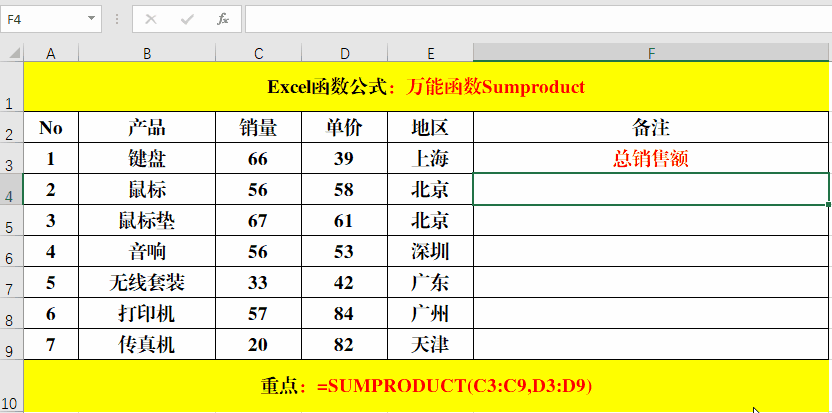 二、Sumproduct:求和。