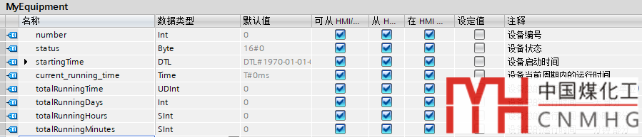 1)增加totalRunningTime,類(lèi)型為:UDInt,表示設(shè)備運(yùn)行的總時(shí)間,以分鐘為單位;