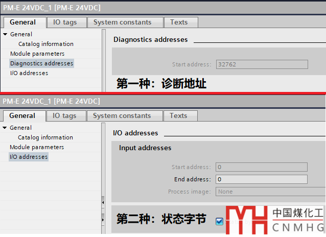 2、電源模塊的當(dāng)前狀態(tài)存儲(chǔ)在過(guò)程輸入存儲(chǔ)區(qū)中,可以有兩種方式進(jìn)行診斷。一種是使用系統(tǒng)默認(rèn)的診斷地址(本例程中:32762),另一種是配置一個(gè)狀態(tài)字節(jié)(Status Byte),默認(rèn)為地址0;