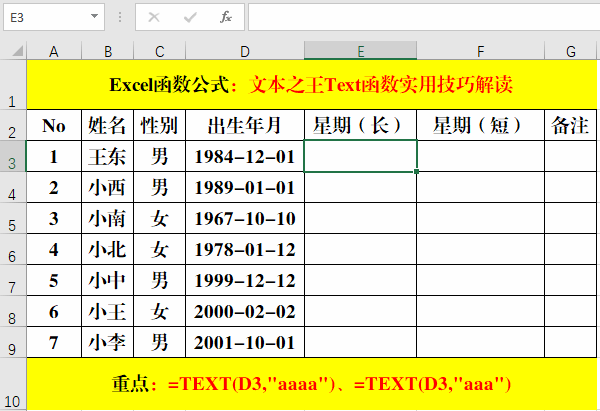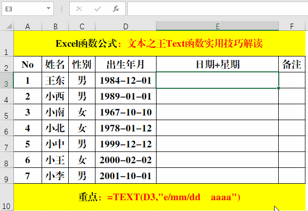 七、Text函數(shù)與“日期+星期”。