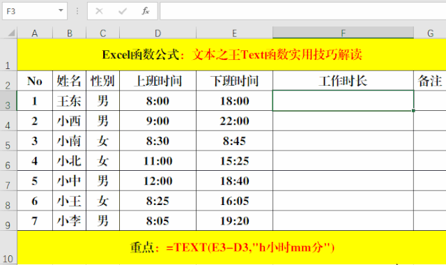 八、Text函數(shù)與“工作時長”。