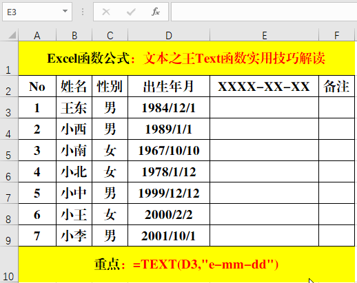 三、Text函數(shù)與“e-mm-dd”日期格式。