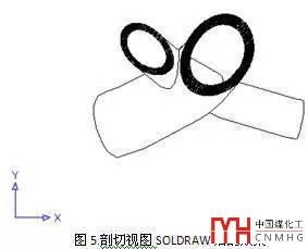 下圖為前面例子中的視口經(jīng)過SOLDRAW處理后的效果(黑色封閉區(qū)域為剖切面):