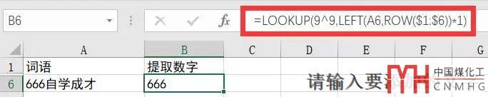 公式:=LOOKUP(9^9,LEFT(A6,ROW($1:$6))*1)