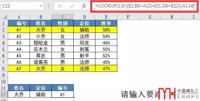萬能套用:=lookup(1,0/(查找值=查找列),結(jié)果列)
