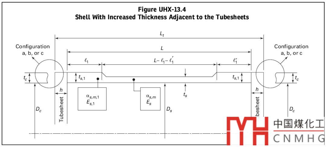 在GB/T 151-2014的7.4.6.5節(jié),對于這種換熱器,給出了更詳細的算法。其計算原理是將筒體剛度按照各分段的串聯(lián)關(guān)系,得到殼體等效總剛度,然后計算管束和殼體的等效剛度比,再代入正常的計算。