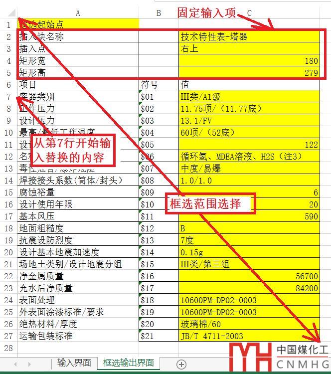 B2為插入塊的名稱,即第一步中塊的名稱,示例里為“技術(shù)特性表-塔器”。