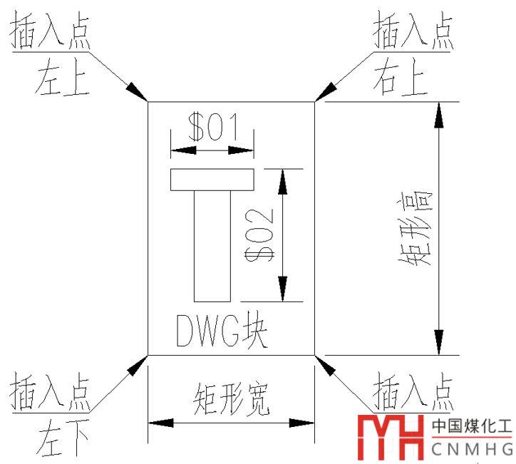 D2為塊2的插入點,下拉菜單里有4個輸入項分別為,右上,右下,左上,左下。對應(yīng)DWG塊的插入點。
