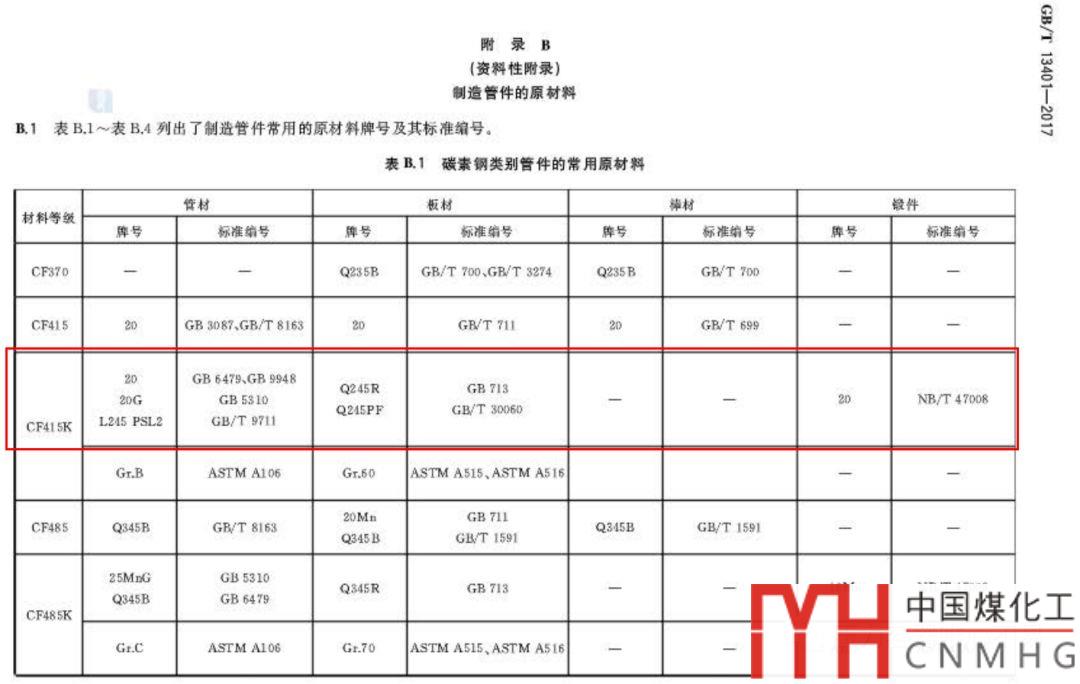 由于新規(guī)范是管件制造單位編制,增加了管件制造單位的自由度,但是由于材料等級對應(yīng)各種材料。比如CF415K,可以用板材,管材,鍛件,可以用壓力容器,可以用鍋爐,可以用ASME材料,屬于一對多。用料不一定可控。所以寫CF415K這類材料等級不是特別合適。