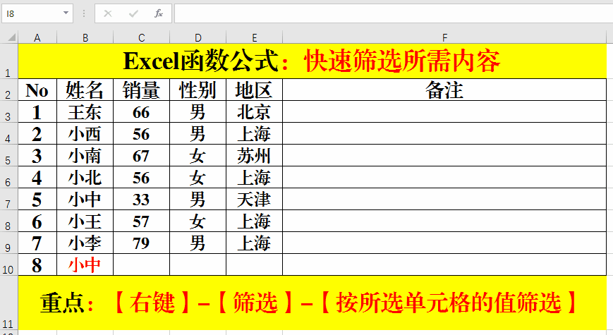 篩選數(shù)據(jù),我們一般按照【數(shù)據(jù)】-【篩選】-……的步驟去做的。其實(shí)我們還可以使用快捷方法篩選我們需要的數(shù)據(jù)。