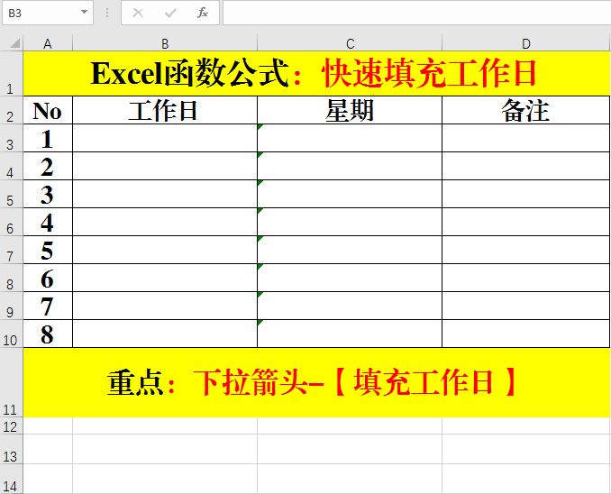 五、快速填充工作日。