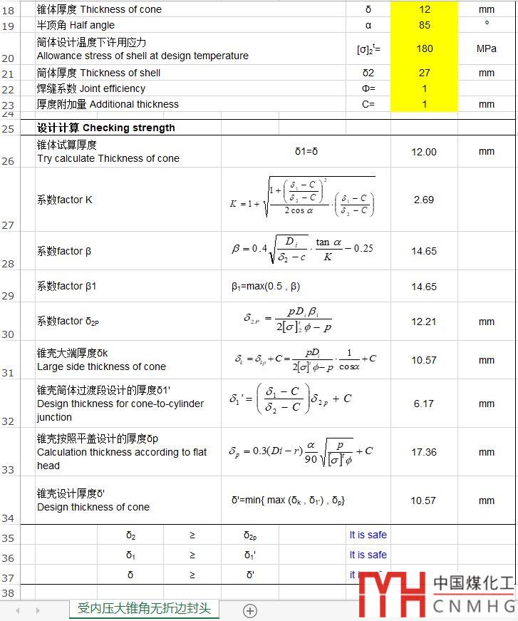 最終錐殼的名義厚度δ大于錐殼的設(shè)計厚度δ’。