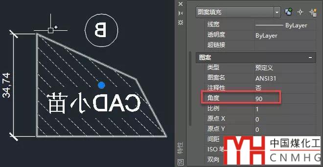 想讓填充線反向的話,不需要用變量控制,只需要調(diào)整填充線的角度就好了,如下圖所示。