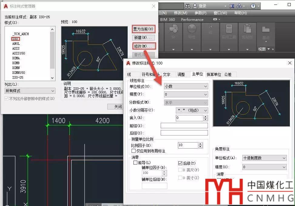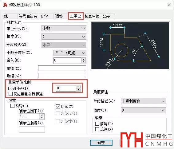 單擊“主單位”選項(xiàng)卡,找到測量單位比例,將比例因子設(shè)置為10,如下圖所示。