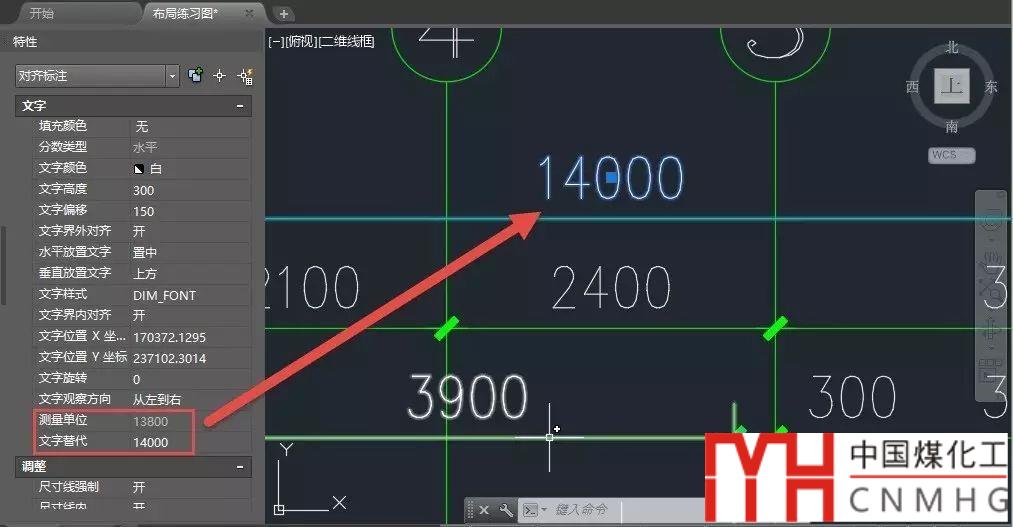 我們有時(shí)發(fā)現(xiàn)圖中標(biāo)注的尺寸和DI測量的長度不一致,如果是經(jīng)確認(rèn)是用文字替代了測量值,比如上面我們將13800改成了14000,想改會(huì)測量值,不要輸入13800,而是要保持動(dòng)態(tài)的尺寸值,CAD中尺寸關(guān)聯(lián)的話,標(biāo)注的測量值是會(huì)跟圖形尺寸而變化的。修改方法如下: