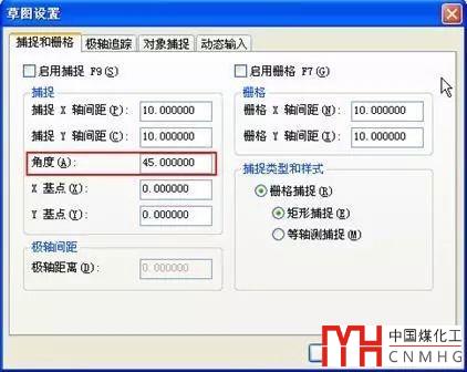 在CAD早期版本,這個角度是可以再柵格和捕捉設(shè)置對話框中設(shè)置的,如圖所示。