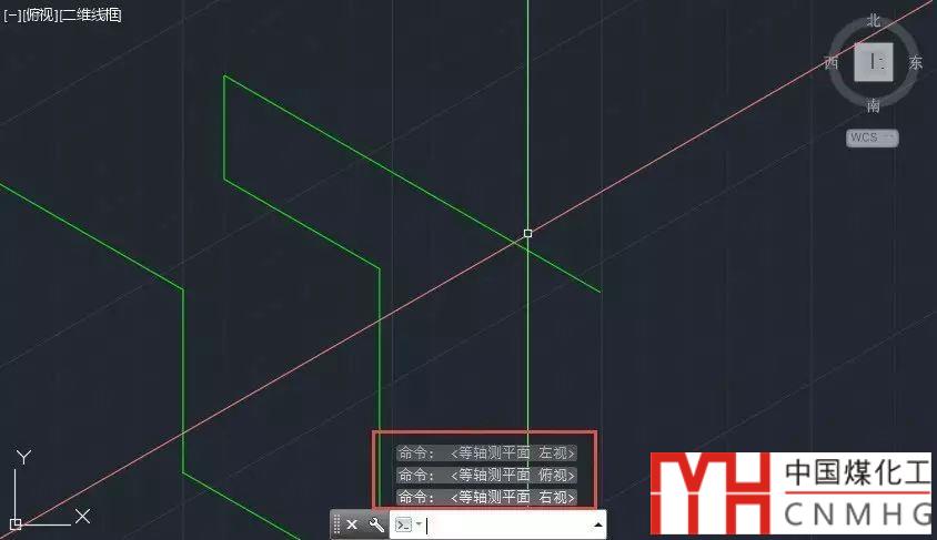 為了繪制軸側(cè)圖的不同側(cè)面,等軸測捕捉還根據(jù)視圖分了幾種狀態(tài),按F5可以進行切換,如圖所示。