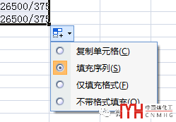 先左鍵單擊選中此夾點,然后右鍵,就可以顯示自動填充選項菜單了,如下圖所示。