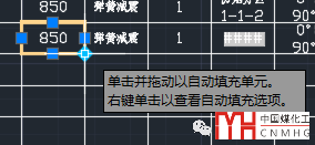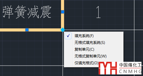 好在CAD也提供自動填充選項,可以通過自動填充的設(shè)置來解決這個問題。當(dāng)把光標(biāo)停留在單元格右下角夾點處時會彈出提示,告訴我們右鍵可以打開自動填充選項,如下圖所示。