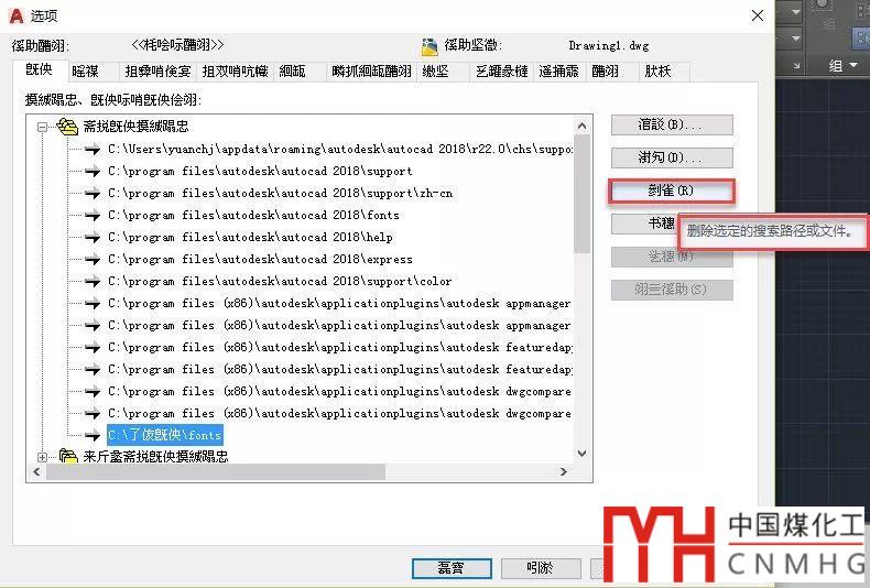 設(shè)置搜索路徑和將字體全部拷到CAD的FONTS目錄下效果一樣,只是路徑刪除更加容易。單擊確定按鈕關(guān)閉選項(xiàng)對話框,退出CAD,重新啟動(dòng)CAD,這時(shí)打開文件對話框、選項(xiàng)對話框就已經(jīng)出現(xiàn)了亂碼。2018版都如此,其他版本應(yīng)該也類似。我進(jìn)入字體目錄,依次刪除不同格式的字體,最后果然問題是由SIMSUN.TTC(也就是宋體)這個(gè)字體文件引起的。其實(shí)在CAD軟件啟動(dòng)的狀態(tài)下,直接選擇刪除目錄下所有的字體文件,這個(gè)字體文件因?yàn)楸皇褂?,是無法刪除的。