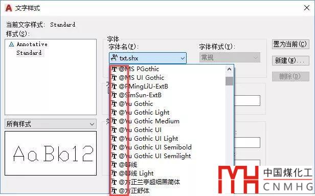 其實(shí)處理問(wèn)題的正確方法也很簡(jiǎn)單,既然很多字體從來(lái)不用,干嘛不刪除掉呢,刪掉多余字體可以是列表項(xiàng)減少,找起來(lái)就相對(duì)容易了。另外,即使字體列表有很多項(xiàng)(比如常規(guī)字體列表中包含大量操作系統(tǒng)字體),也可以通過(guò)連續(xù)輸入字體名稱的第一個(gè)或前幾個(gè)字母可快速定位找到自己需要使用的字體,比如輸入TX,就可以快速找到TXT.shx,如下圖所示。