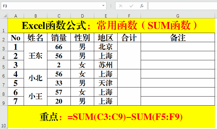 四、SUM函數:合并單元格求和。