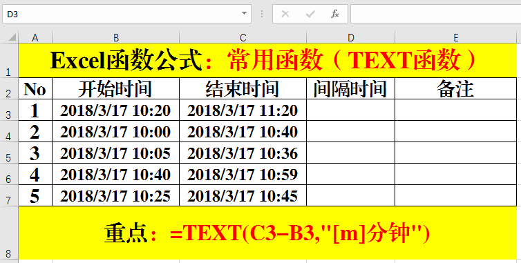 二、TEXT函數:返回間隔分鐘數。