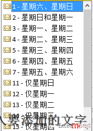 “1”代表的是星期六、日。