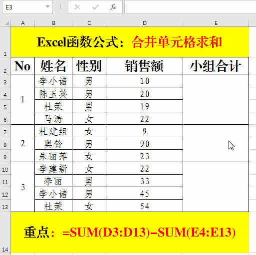 2、輸入公式:=SUM(D3:D13)-SUM(E4:E13)。