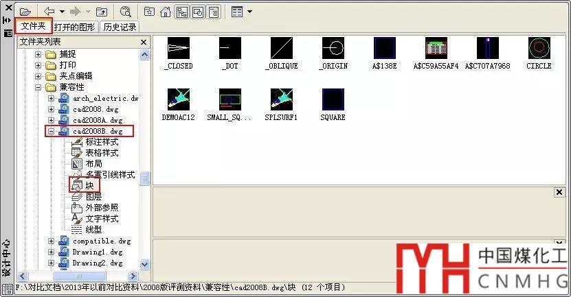 1、按CTRL+2打開設(shè)計(jì)中心,單擊“文件夾”選項(xiàng)卡,瀏覽找到我們需要插入圖塊的圖形,單擊文件名前的加號,將數(shù)據(jù)列表展開,單擊“塊”,在右側(cè)就可以顯示圖中所有的圖塊,我們可以設(shè)置圖塊的顯示方式為大圖標(biāo),如下圖所示。