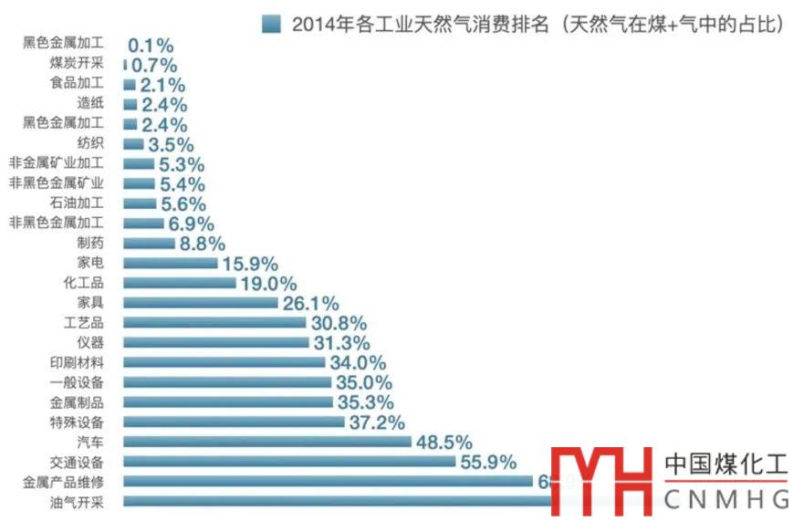 下表則反映了2014年各工業(yè)已經(jīng)完成的氣代煤情況: