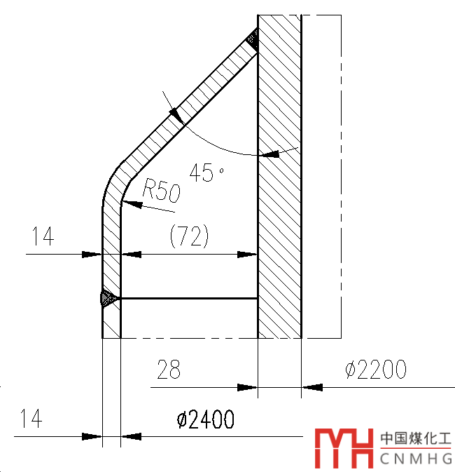 夾套錐殼折邊的尺寸與錐殼也不同,強(qiáng)行輸入,會造成幾何尺寸的的不匹配。