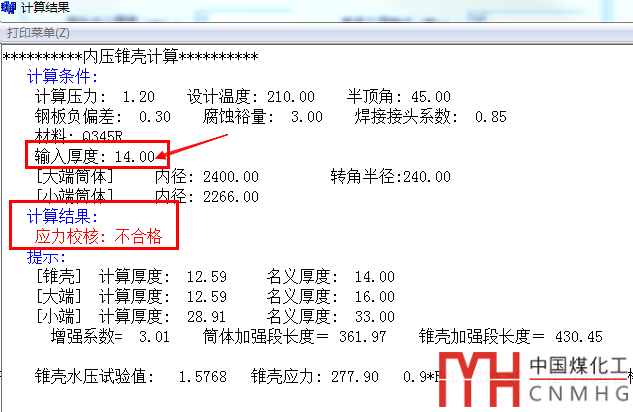 拋開為了能計(jì)算,對于尺寸做了一些修改。僅僅看內(nèi)壓錐體的計(jì)算書真合格了嗎?