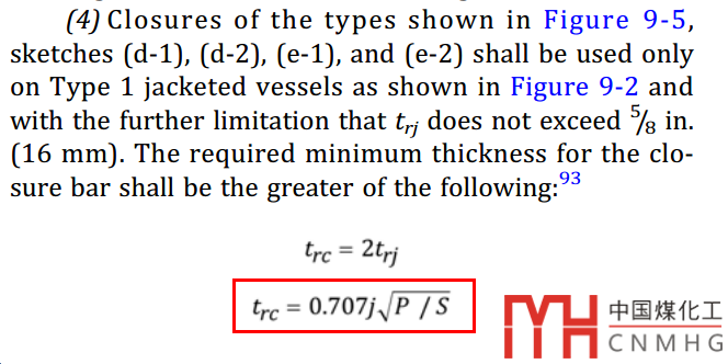 對于這種結(jié)構(gòu)的封閉件,只有結(jié)構(gòu)尺寸的要求,厚度不小于夾套筒體厚度,并沒有要求封閉件按照公式計(jì)算。