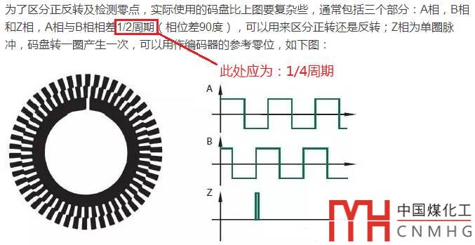 在介紹絕對(duì)編碼器之前,首先對(duì)上篇文章的一處錯(cuò)誤進(jìn)行更正。在文章《讀懂編碼器的工作原理及增量型編碼器》,關(guān)于增量型編碼器的A相與B相的波形的時(shí)間差,應(yīng)為1/4周期,而非1/2周期。請(qǐng)看下面的圖片: