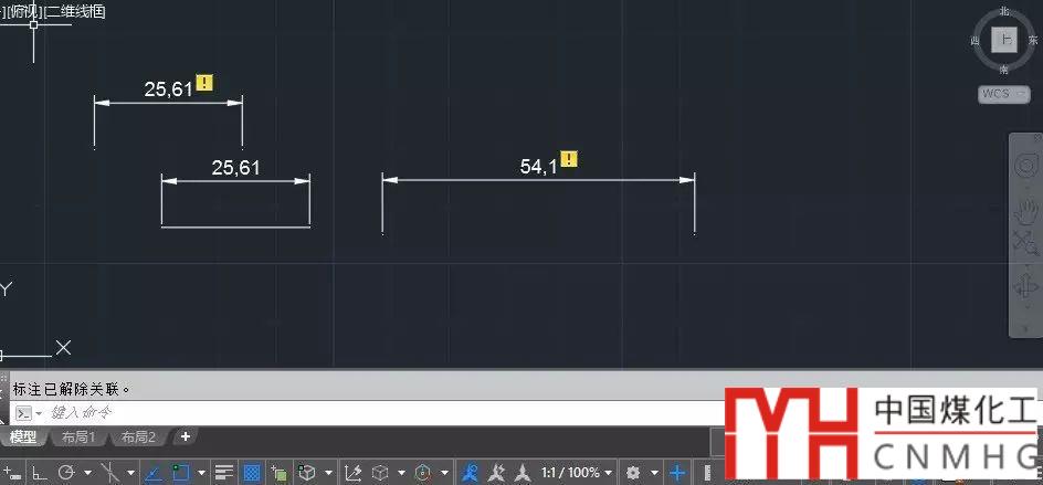 我們由于標(biāo)注與直線關(guān)聯(lián),調(diào)整直線長(zhǎng)度后,標(biāo)注值也跟隨發(fā)生了變化,而另一條直線被刪除后,由于標(biāo)注不不再與圖形關(guān)聯(lián),就出現(xiàn)了一個(gè)感嘆號(hào)。那位朋友拿到的圖紙中看到那么多感嘆號(hào),有兩種可能性,一種是這些標(biāo)注確實(shí)跟圖形沒(méi)有關(guān)聯(lián)關(guān)系,還有一種是畫(huà)這些標(biāo)注時(shí)設(shè)置了不關(guān)聯(lián)(DIMASSOC變量設(shè)置為1標(biāo)注不關(guān)聯(lián),設(shè)置為2標(biāo)注關(guān)聯(lián),設(shè)置0標(biāo)注是分散對(duì)象)。
