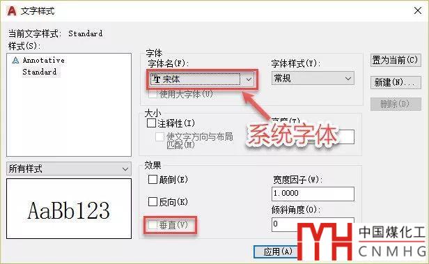 我嘗試在不同版本CAD和操作系統(tǒng)上按照他的截圖中的提示輸入-style命令來模擬腳本創(chuàng)建文字樣式的過程,終于發(fā)現(xiàn)了問題所在,當使用操作系統(tǒng)的宋體時和使用CAD的宋體.shx字體時參數(shù)數(shù)量是不一樣的,其實這一點再文字樣式對話框中也可以看出來。