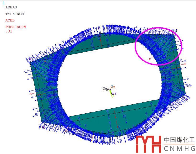 怎么調(diào)整都無法將箭頭翻轉(zhuǎn),只有一種方法,就是單獨(dú)將這3個面的載荷定為負(fù)壓。