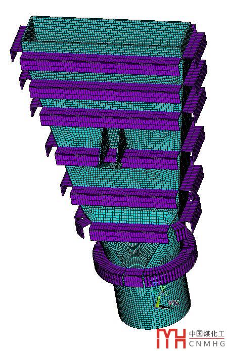分析殼體采用的是shell181全積分單元,加強(qiáng)角鋼采用的是beam188單元。一切按部就班的進(jìn)行。
