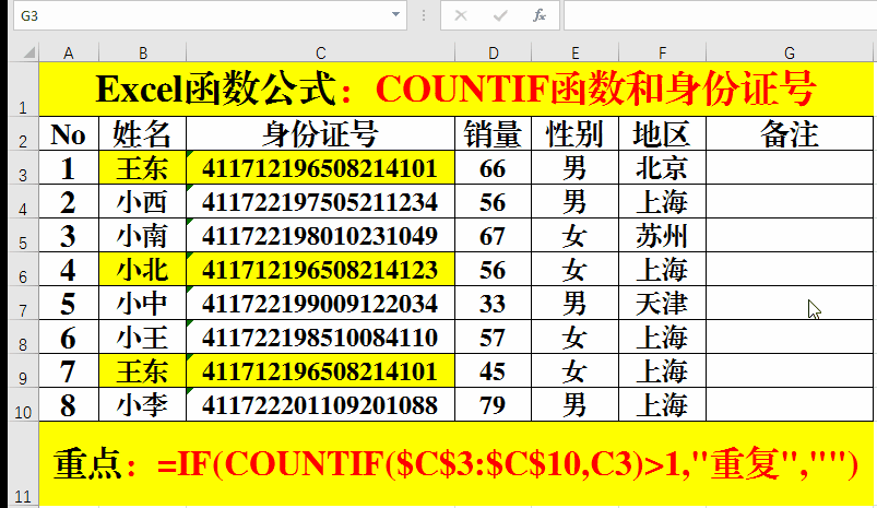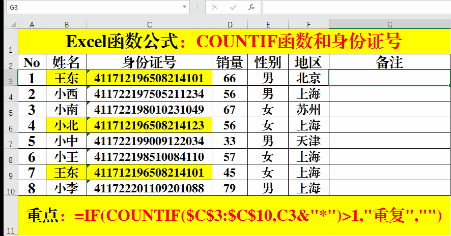 Excel函數(shù)公式:COUNTIF函數(shù)查重技巧,必須掌握哦