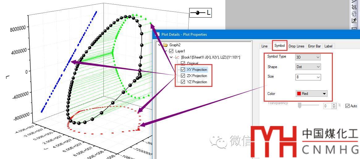 勾選Projection,可以設(shè)置投影的顏色、散點(diǎn)形狀/大小、連線等格式