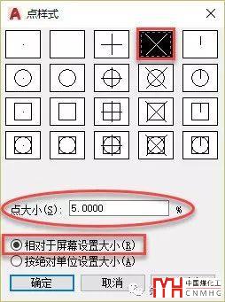 點的顯示效果是由點樣式的設(shè)置決定的,在格式菜單中選擇點樣式或直接輸入DDPTYPE命令打開點樣式設(shè)置對話框,設(shè)置如下圖所示。