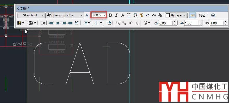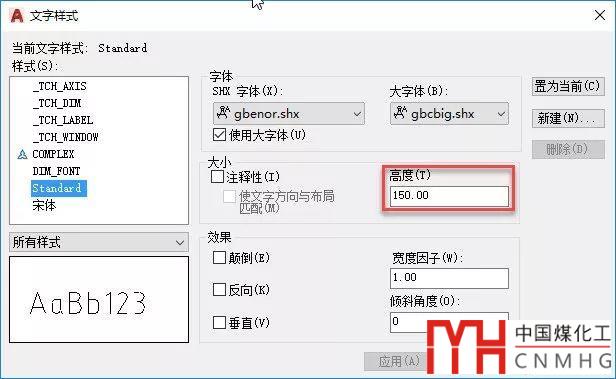 比如我們將文字樣式的高度設(shè)置為150,如下圖所示。