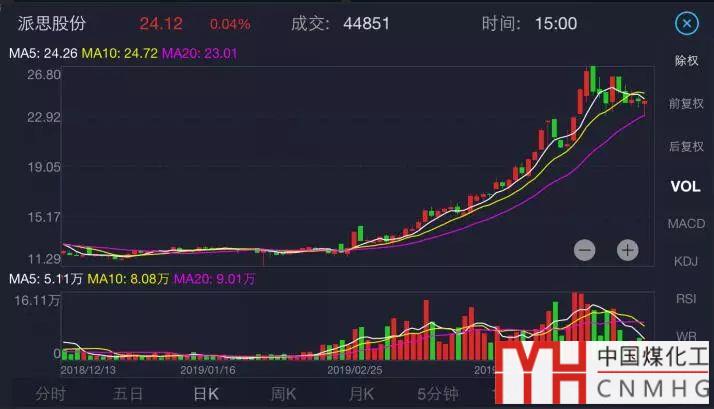 中國股市就是如此神奇,業(yè)績不利不影響股市飆升,派思股份從2019年1月4日的12.5元一路上漲翻倍,至2019年4月19日最高達(dá)到26.8元。