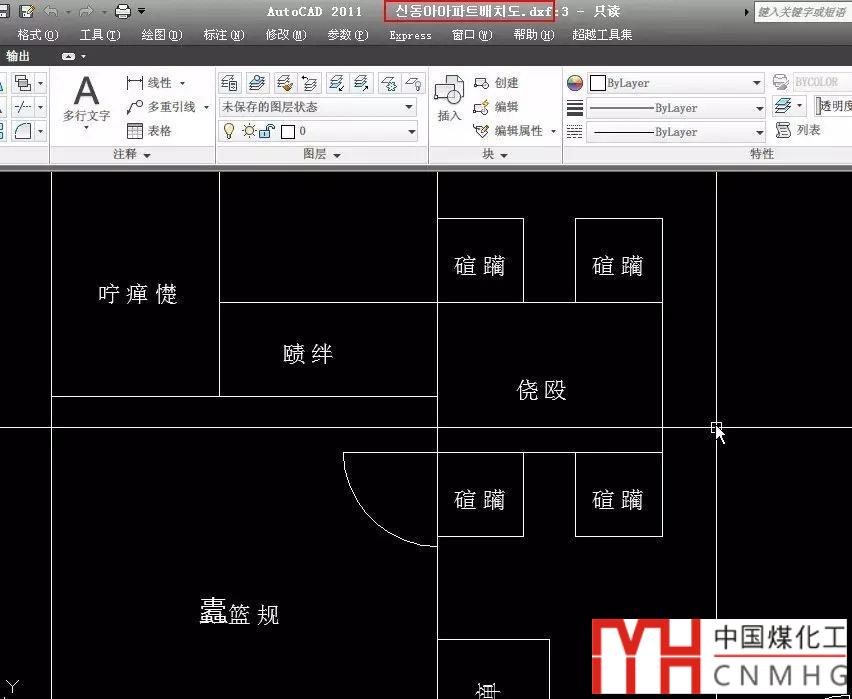 從文件名看是一張韓文圖紙,但文字顯示的全部是中文,雖然不是亂碼,但不可讀。假如中文圖紙被保存成了英文的代碼頁,則會(huì)看上去是明顯的亂碼。