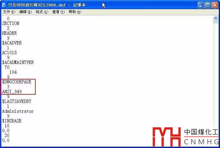 2、用記事本打開DXF文件,找到ANSI__936,改成ANSI_949,如下圖所示。