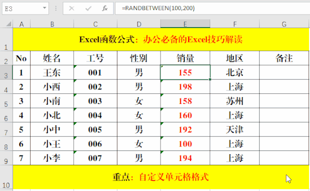 在目標(biāo)單元格中輸入公式:=RANDBETWEEN(100,200)。