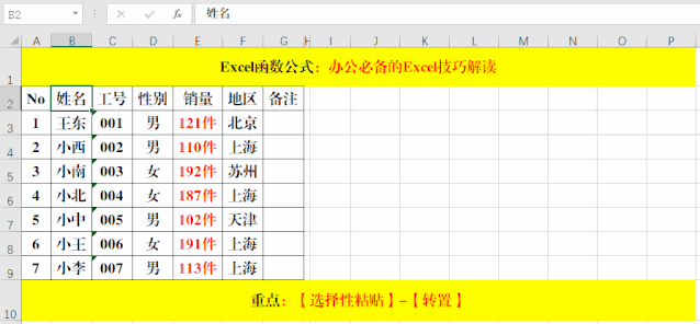 目的:對“姓名”和“銷量”轉(zhuǎn)置顯示。